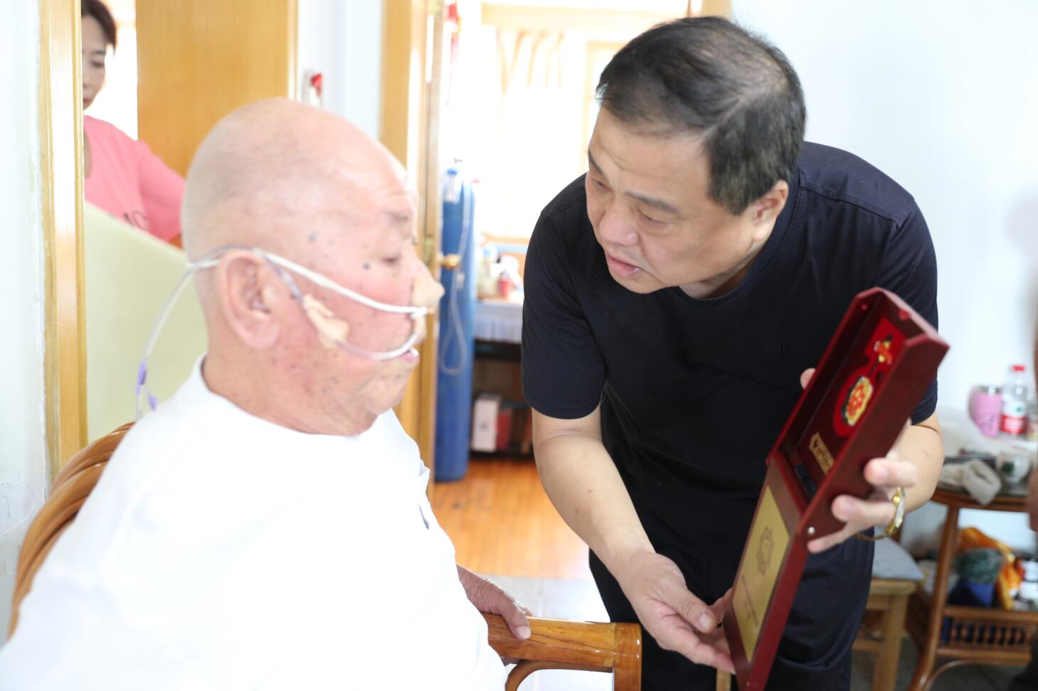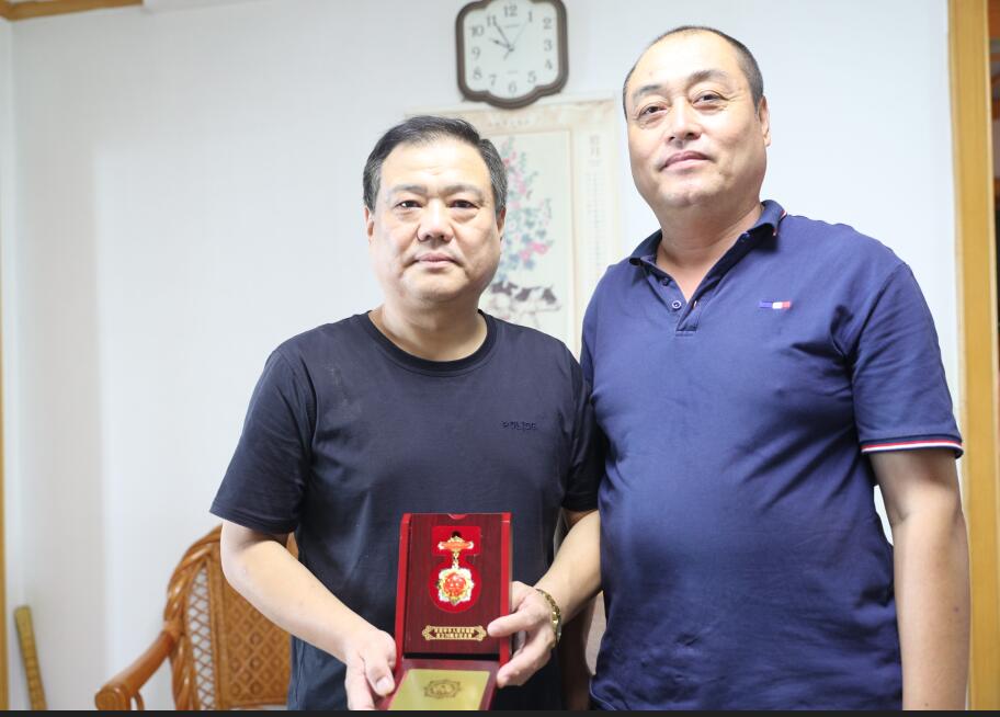 9月23日上午,青島安裝建設股份有限公司紀委書記、工會主席李金通與相關同志帶著上級領導部門和公司領導的重托,將這枚閃耀著光輝象征與最高榮譽的獎章送到了見證共和國誕生和發展奇跡并為之做出突出貢獻的全國勞模賀再奎及家人手中。感謝他為祖國和人民的無私奉獻,更感謝他為青島安裝公司帶來的無尚榮耀。